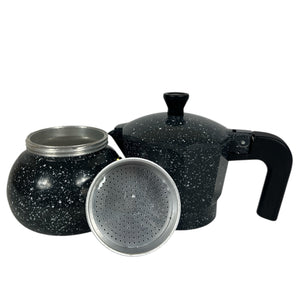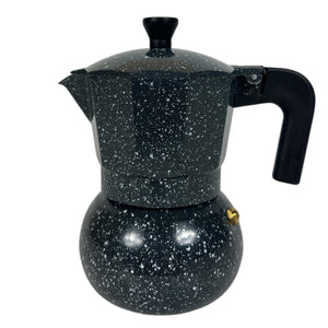 Son revêtement effet granite gris apporte une touche contemporaine tout en offrant une excellente résistance aux rayures, à la chaleur et à l’usure quotidienne. Fabriquée en aluminium ou inox de haute qualité (selon le modèle), cette cafetière est conçue pour un usage quotidien durable.